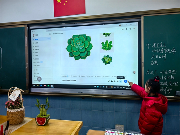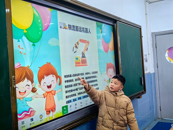 课堂上,老师带领学生认识了先进的AI产品。低年级的小朋友在老师协助下用AI识别了不同的植物,只需用手机拍下植物,就能快速获取其名称、习性等信息。基于这些知识,小朋友们还动手制作了独特的植物名片,将科技与手工巧妙融合。中年级的同学在掌握基本的使用技巧后,借助AI了解了不同国家的劳动文化。通过智能搜索,学生们看到了世界各地独特的劳动场景与传统,拓宽了国际视野。随着智能机器人的登场,高年级的课堂气氛达到了高潮。老师详细讲解并演示机器人打扫卫生的操作方法,同学们跃跃欲试,在实践中感受科技为生活带来的便捷。课程末尾,同学们还围绕“如何用AI技术创造更美好的生活”这一话题,展开了积极讨论,同学们踊跃发言,提出利用AI优化家务安排、设计智能垃圾分类等创意想法。