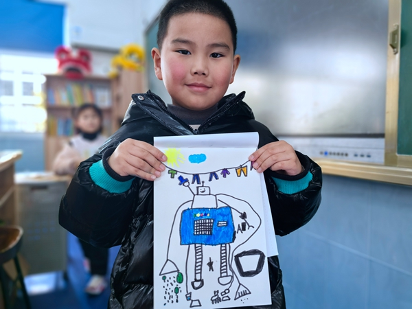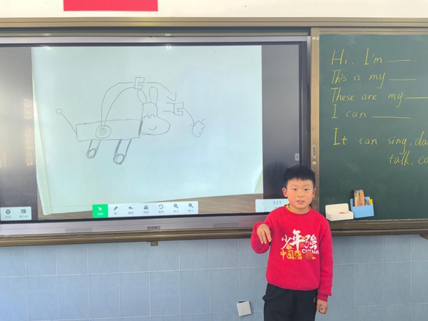 二年级小朋友在“Hello, AI”板块中,被春晚AI视频瞬间抓住了眼球,随后关于人工智能的探讨更是激发了大家的求知欲。在“Design my AI robot”环节,学生们充分发挥想象力,精心设计AI机器人的外观与技能,从酷炫外形到超强的学习、家务处理能力,各种奇思妙想层出不穷。最受欢迎的当属“Talk with AI”板块,大家用英语与豆包智能体交流,锻炼语言能力的同时,也体验到AI的智能与便捷。