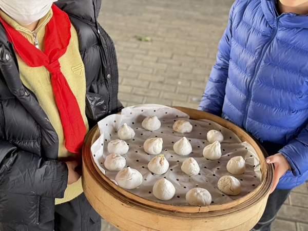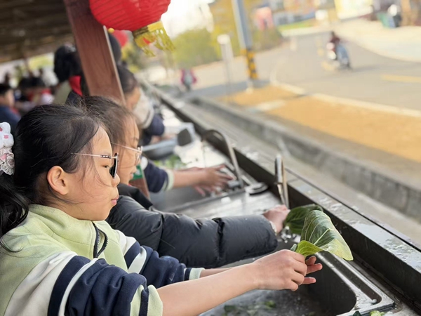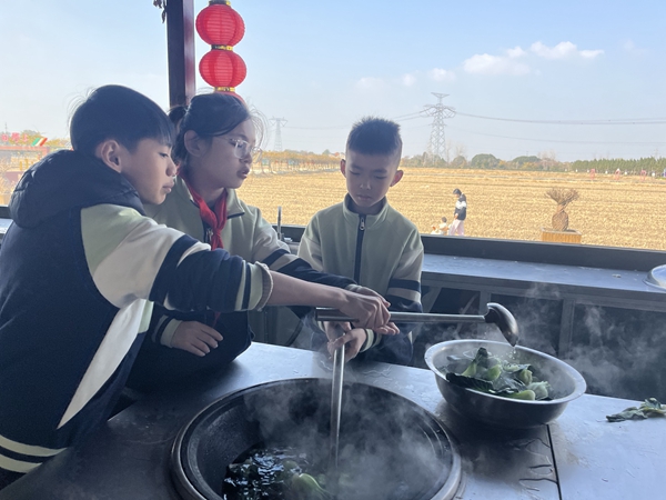 田间收获的食材化作桌上美味,同学们分组协作,一同烹制农家咸肉菜饭,熬煮暖心暖胃的萝卜排骨汤,在烟火气中提升动手能力,感受团队协作的力量。基地还提供丰富成品菜,搭配自制美食,让大家大饱口福。此外,同学们还学习传统糯米糍团制作方法,蒸制糯米、包制两种口味的糍团,体验传统腌制技艺,亲手制作咸肉,将冬日美味带回家。
