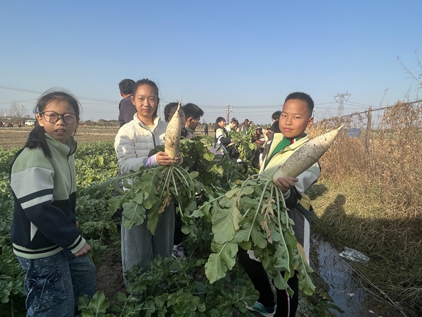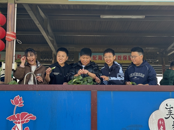 同学们走进冬日菜园,探访耐寒蔬菜,近距离观察霜打青菜的生长状态,亲手采摘脆嫩的青菜,感受冬日田间的生机与收获的喜悦,在劳作中体会农耕的辛劳与乐趣。
