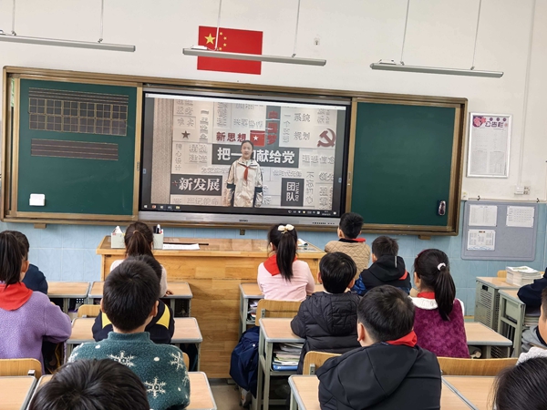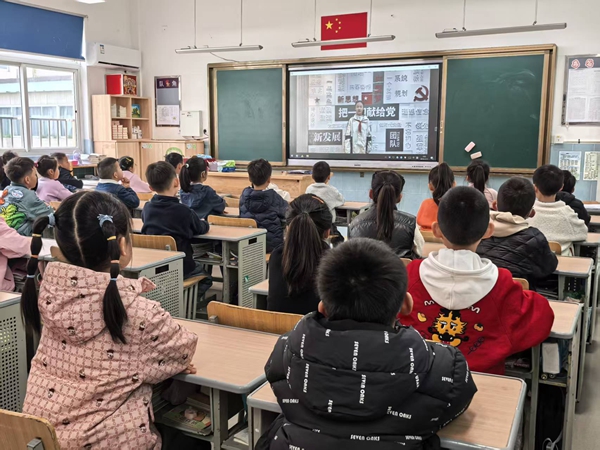 仪式上,来自五(5)中队的升旗手周子涵同学,首先分享了自己对英雄精神与责任传承的理解,言语真挚、信念坚定,充分展现出星辰学子向上向善、致敬先烈的精神风貌。随后,全体师生在屏幕前脱帽敬礼,在激昂的国歌声中,五星红旗缓缓升起,赤诚与敬仰之情隔着屏幕传递。为传递英雄精神与担当力量,五(5)中队的同学们精心准备了主题展示。同学们以声情并茂的诗朗诵《英雄》回溯先烈事迹,用清澈坚定的合唱《心同此愿》诠释“英雄亦是普通人,因担当而伟大”的信念,真挚的表达让每一位同学深受熏陶。仪式最后,学校对3月份星级班集体获奖班级进行了线上表彰。